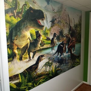 3d Dinosaur Wall Art Forest Wallpaper Living Room Wall Etsy