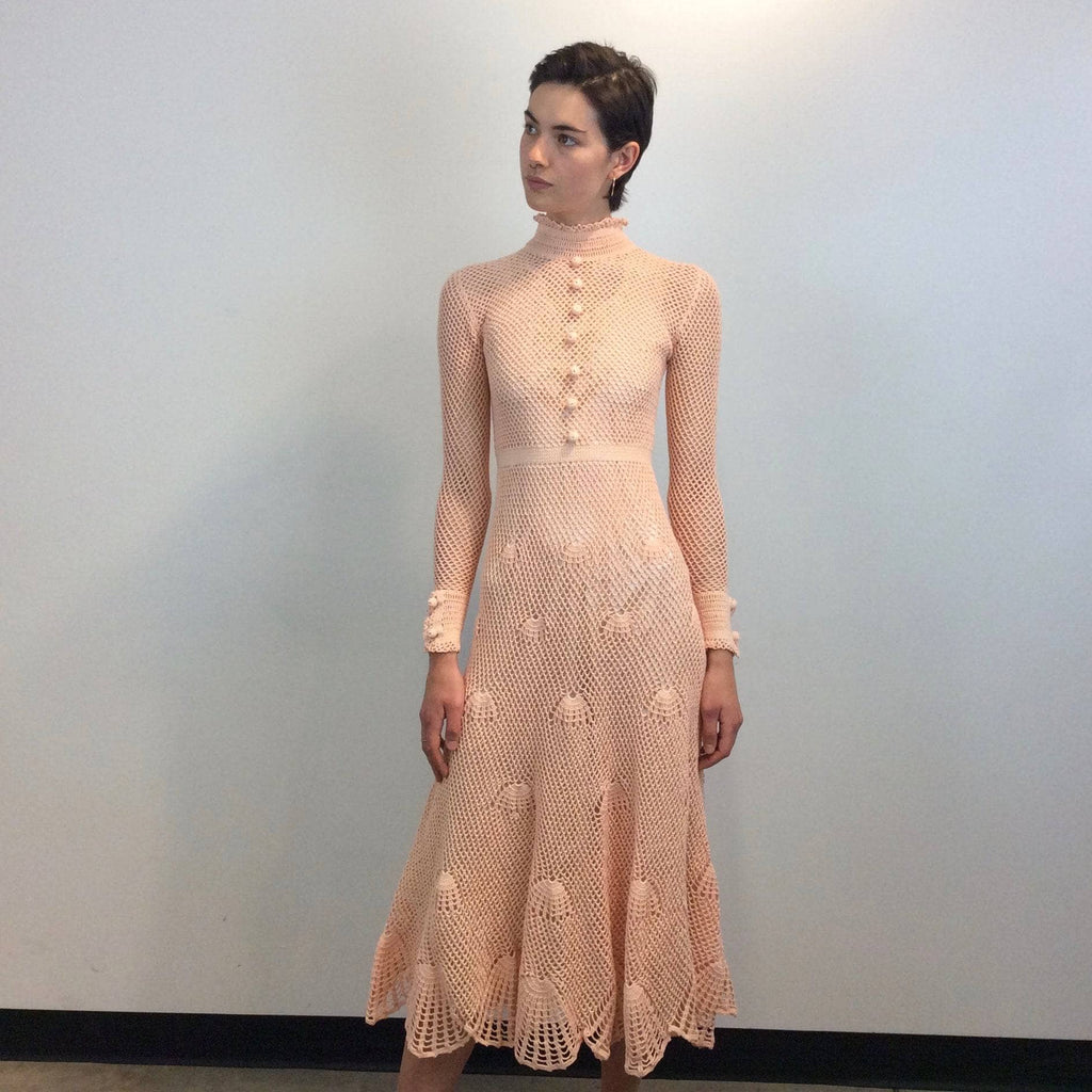 1970s Long Sleeves Crochet Dress Xs M G O S S A M E R